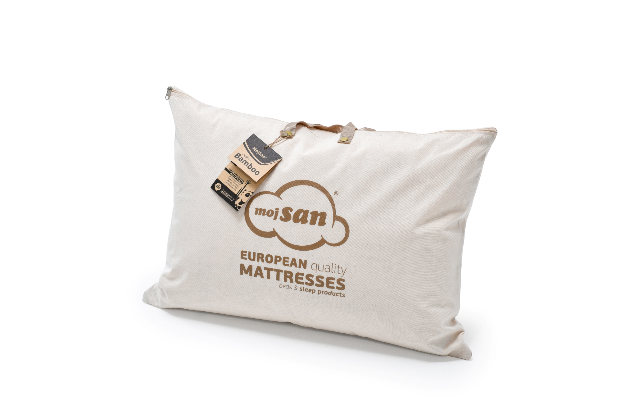 Jastuk MojSan Bamboo sa punjenjem od organskih bambus vlakana u kombinaciji sa pamučnim platnima je odgovor na Vaše potrebe za zdravim okruženjem spavanja. Kombinacija materijala od kojih je izrađen svrstava ovaj proizvod u PREMIUM segment MojSan kolekcije.