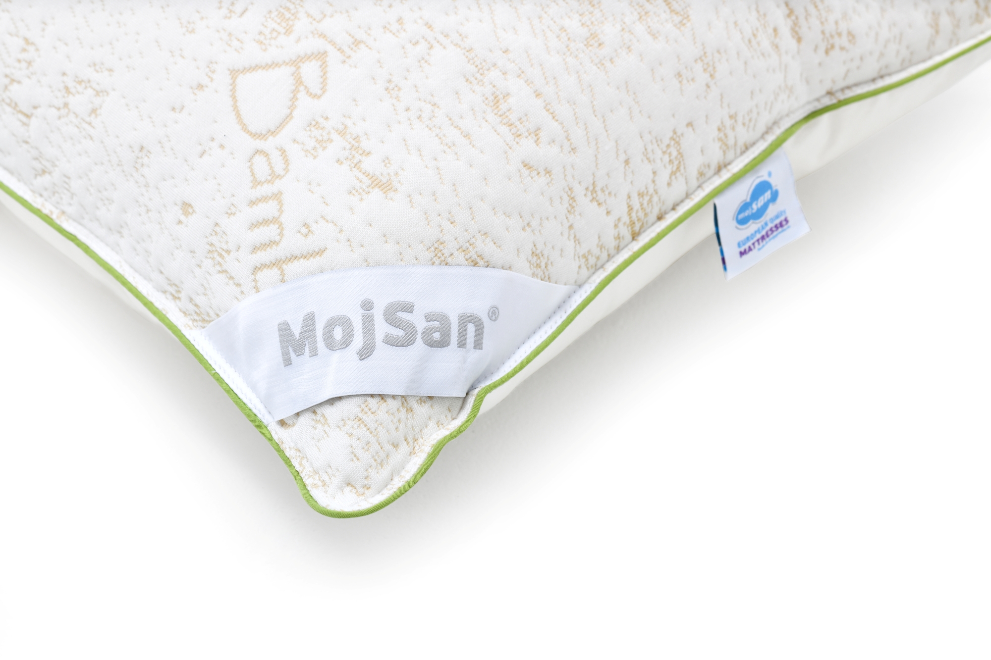 Čini ga vanjska, periva navlaka sa patent zatvaračem unutar koje se nalazi dodatna navlaka na bazi 100% pamučnih vlakana punjena mješavinom bambus i PES vlakana po 30%, te microgela 40%, za vrhunski ugođaj spavanja i kvalitetan san. Jastuk je prilagodljiv te je moguće regulirati visinu jastuka te udovoljiti vlastitim anatomskim zahtjevima spavanja. Preporučuje se osobama sklonim znojenju. Jastuk Bamboo spada u premium ponudu jastuka MojSan. ORGANIC Bamboo, prirodno, organsko vlakno dobiveno iz stabla bambusa. Bambus je 100% prirodan materijal jer za uzgoj nisu potrebna umjetna gnojiva niti agrohemikalije.