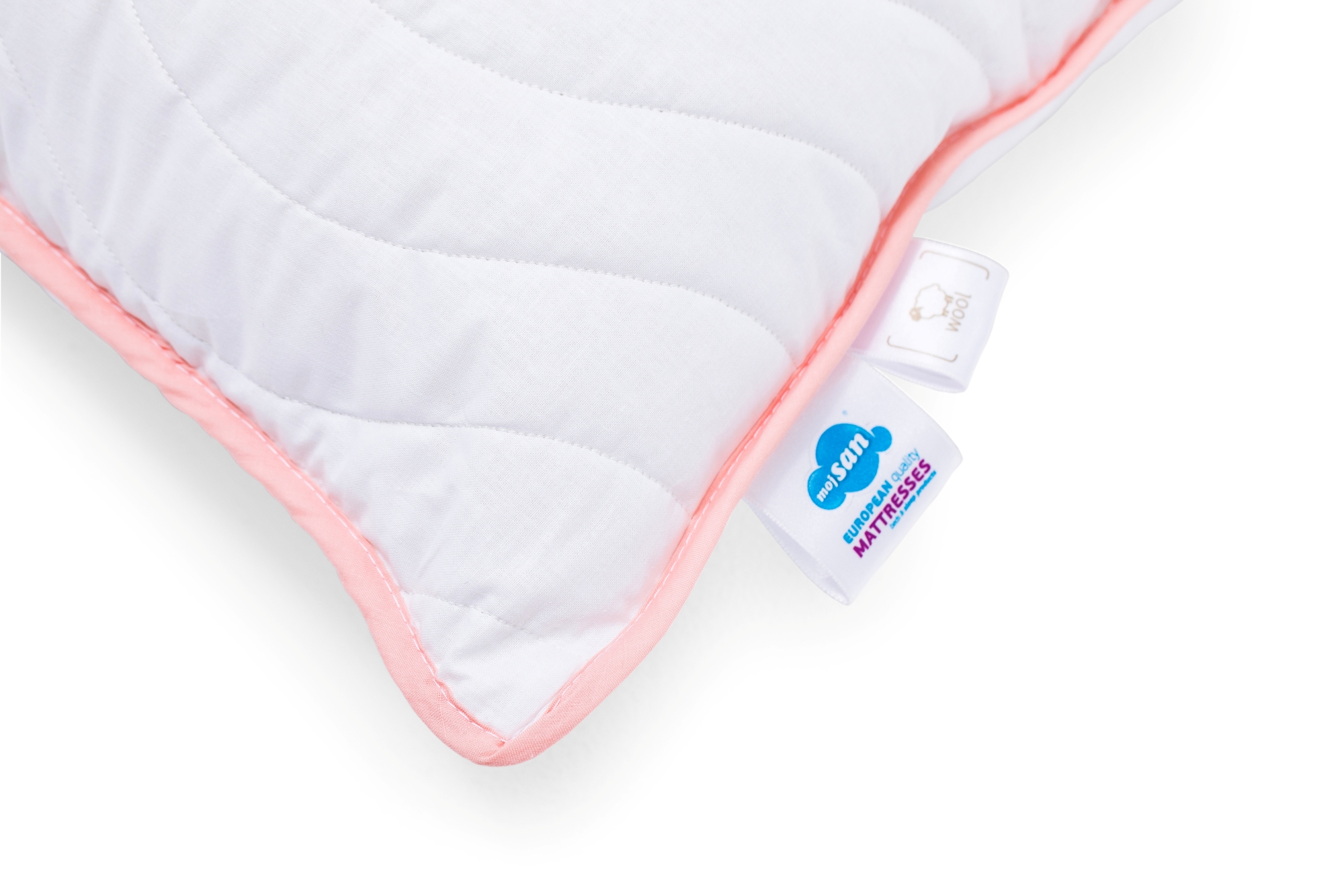 Jastuk MojSan Vuna je klasični jastuk sa vanjskom navlakom od 100%-tnog pamučnog platna, proštepanim vunenim slojem sa unutrašnjom navlakom punjenom mekanom silikonskom kuglicom. Vuna, kao prirodni izolator ima svojstvo regulacije temperature spavanja. Periva navlaka na 40°C sa patent zatvaračem garantira vrhunski higijenski ambijent spavanja. Jastuk MojSan Vuna nudimo u dvije dimenzije 65x50 i 75x60.