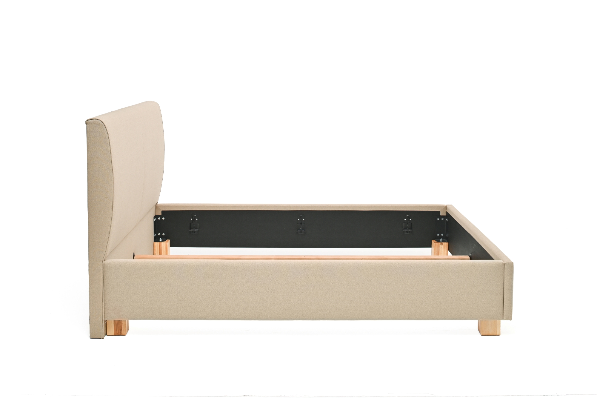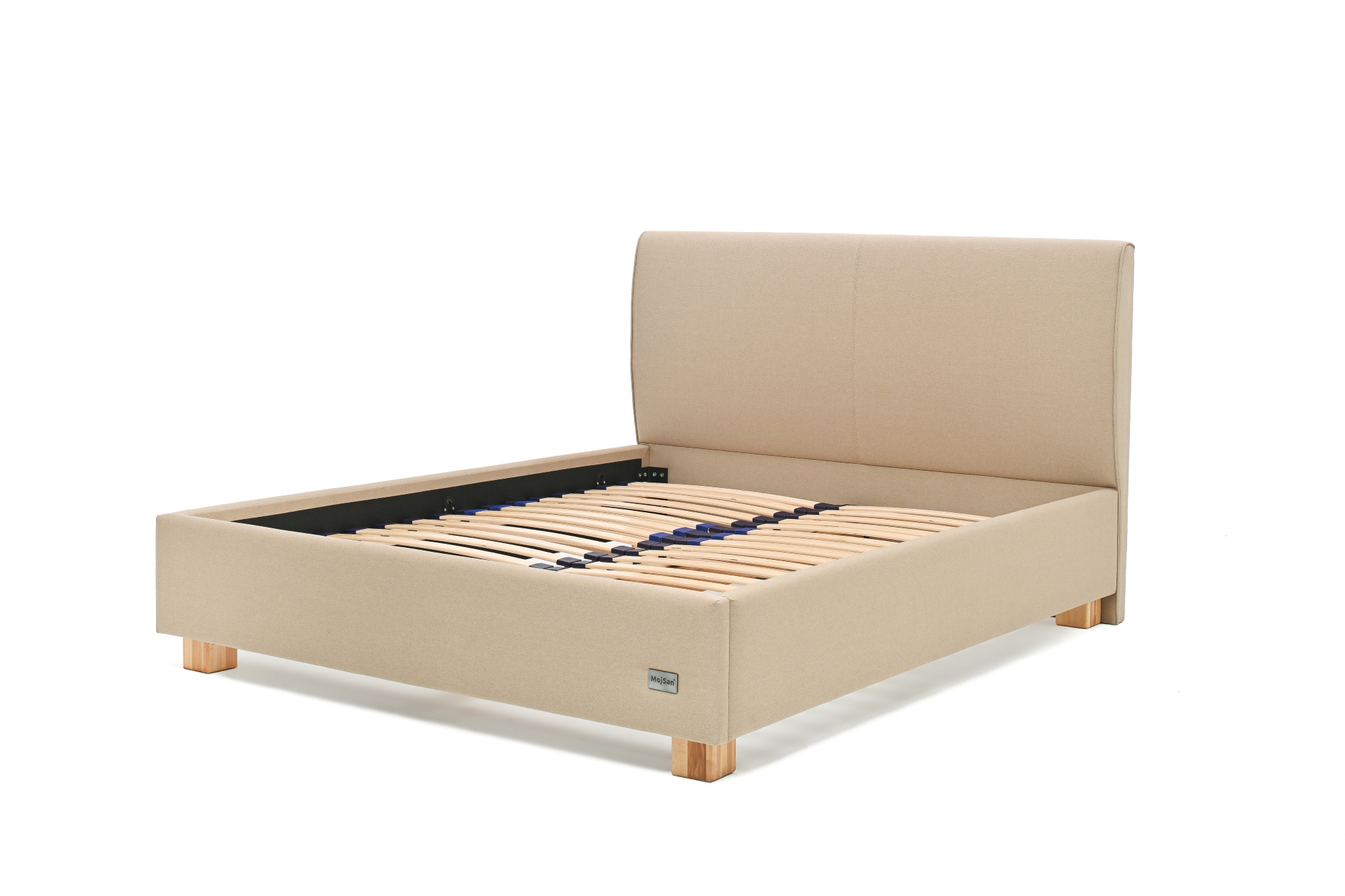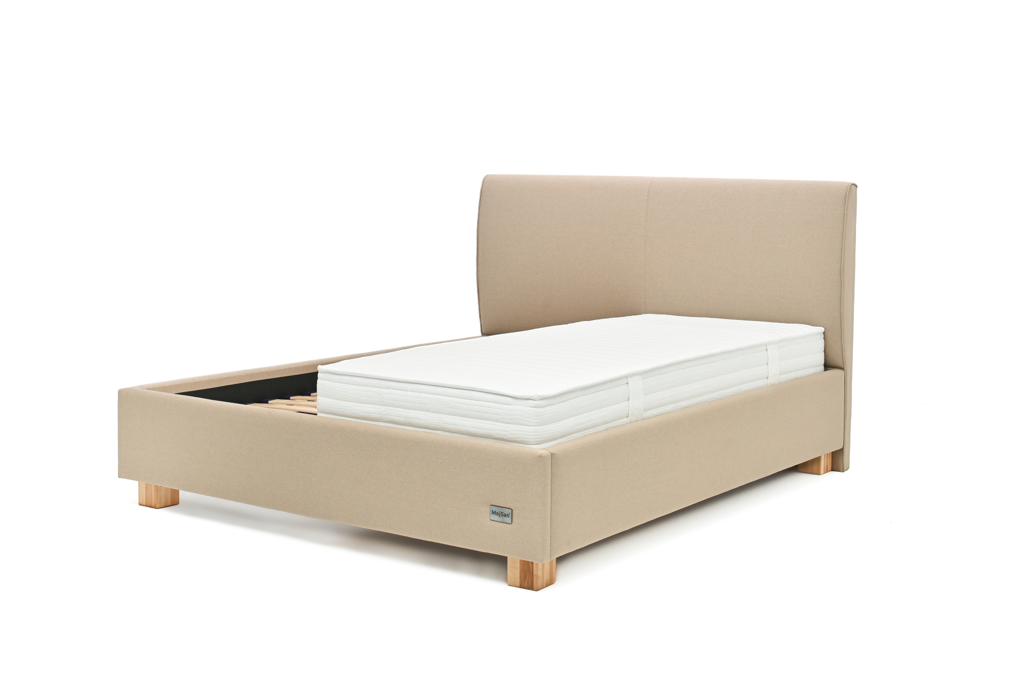 Stoji na četiri masivne bukove nogice modernog dizajna, a sigurnost i stabilnost podloge za spavanje osiguravaju metalni okovi i nosači za latofleks. Kod širina 140 cm i više ugrađena je masivna srednja bukova letva koja ravnomjerno raspoređuje težinu i pruža dodatnu čvrstoću krevetu. Uzglavlje visoko 111 cm i debljine 10 cm, radi unaprijeđenja statike kreveta naslonjeno je na pod, te uz konstrukcijski zahtjevan vizualni identite proizvoda u kombinaciji sa završnim materijalom ističe konceptualni identite svojstven samo Vama! Ležište u unutrašnjem dijelu kreveta na koje se postavlja latofleks ili podnica je moguće spuštati ili dizati u 5 različita nivoa, tako da na ovaj način možete po potrebi prilagoditi ukupnu visinu podloge za spavanje.
