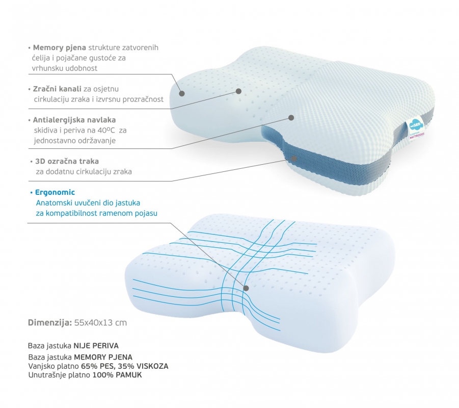 MojSan Visco anatomic line jastuci: Ergonomic, Therapedic, Orthopedic, Travel.